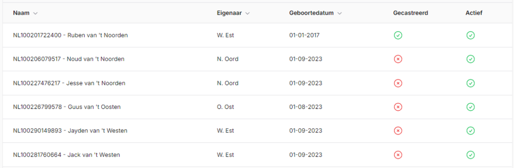 • Op detailoverzicht individueel dier aanklikbaar gemaakt