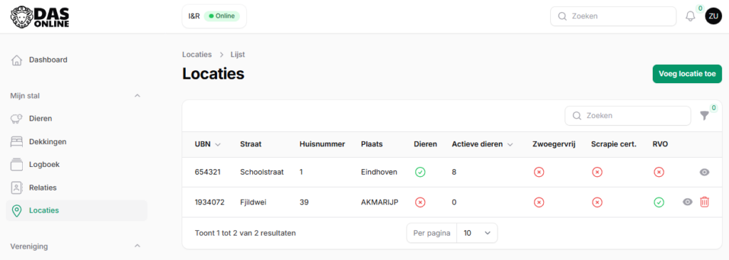 Nieuwe feature I&R “zoek locatie”. Mogelijkheid voor alle gebruikers, óók zonder I&R koppeling, om de openbare I&R locatie gegevens te raadplegen op basis van het UBN of postcode/huisnummer. Ongeacht diersoort of aanwezigheid in DAS. Getoonde informatie: