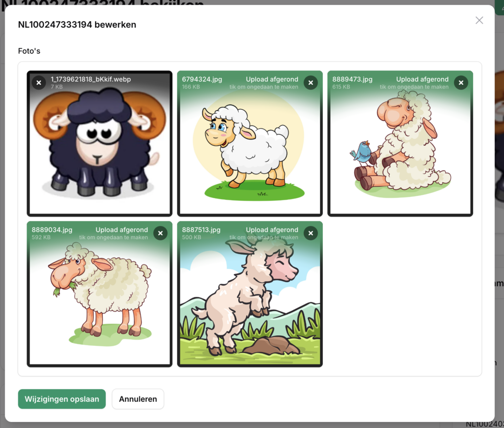 De diereigenaar heeft de mogelijkheid om maximaal vijf foto’s per dier te uploaden of te verwijderen. Deze functie is ontworpen met gebruikersvriendelijkheid in gedachten: