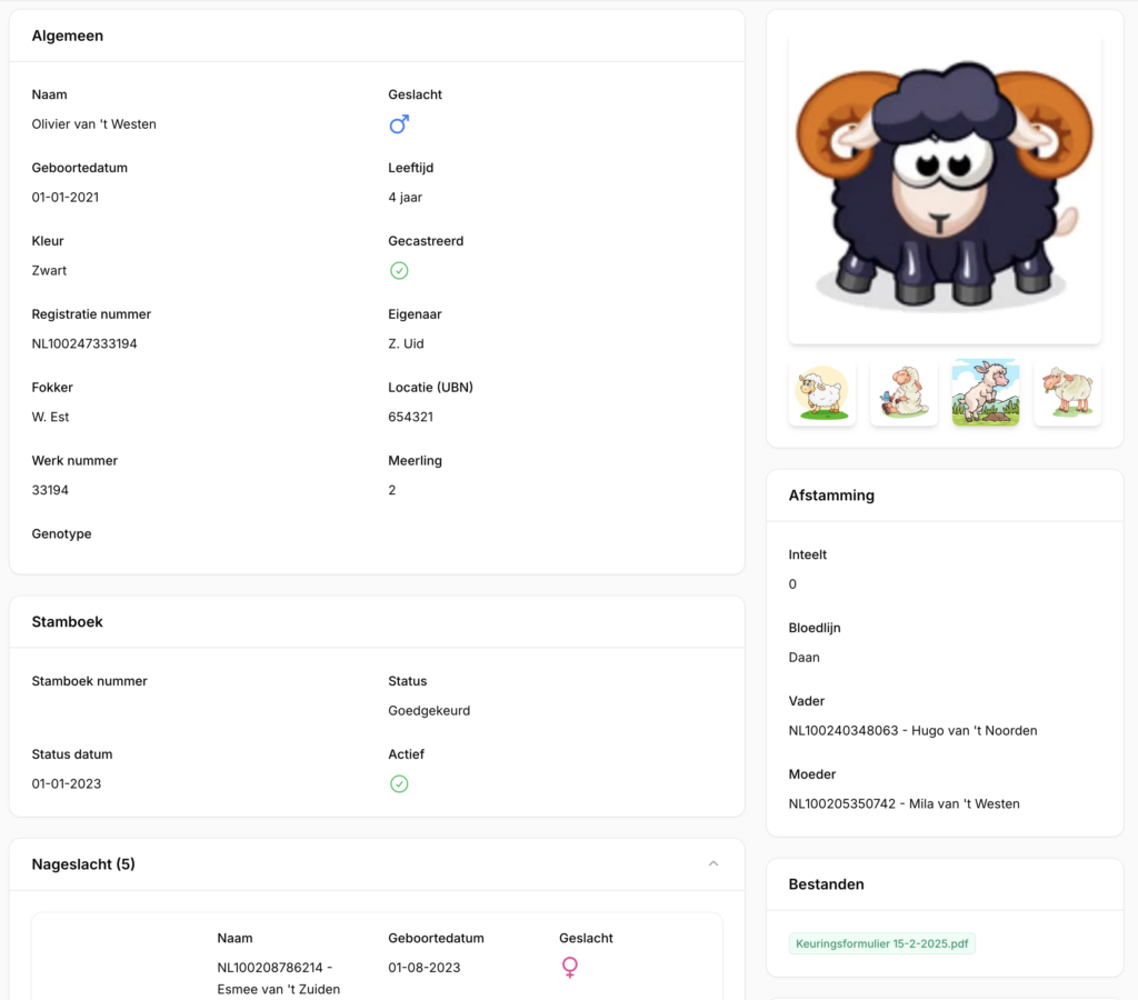 • eenvoudig toevoegen en verwijderen van alle eigen rammen en ooien